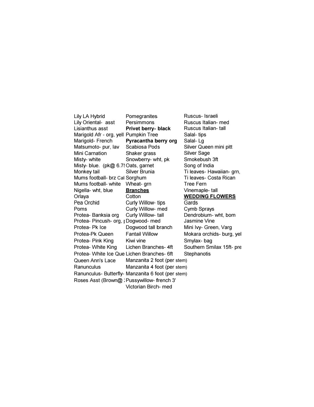 ADD COLOR WITH OUR YEAR ROUND FLOWERS! Call to ask about our Specials - Prices, Quantities, Items are subject to availability and may change without notice!